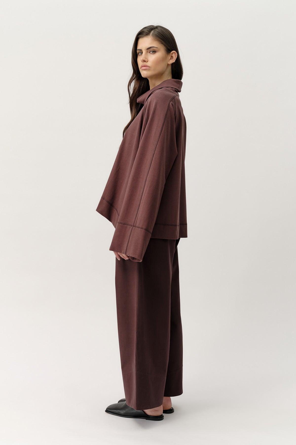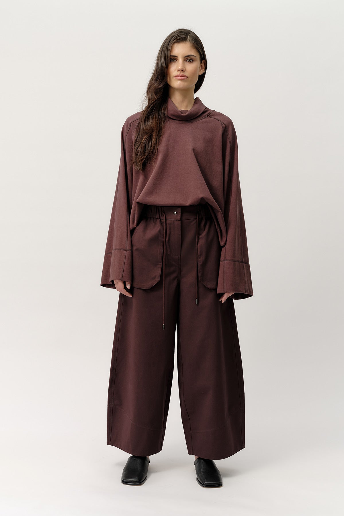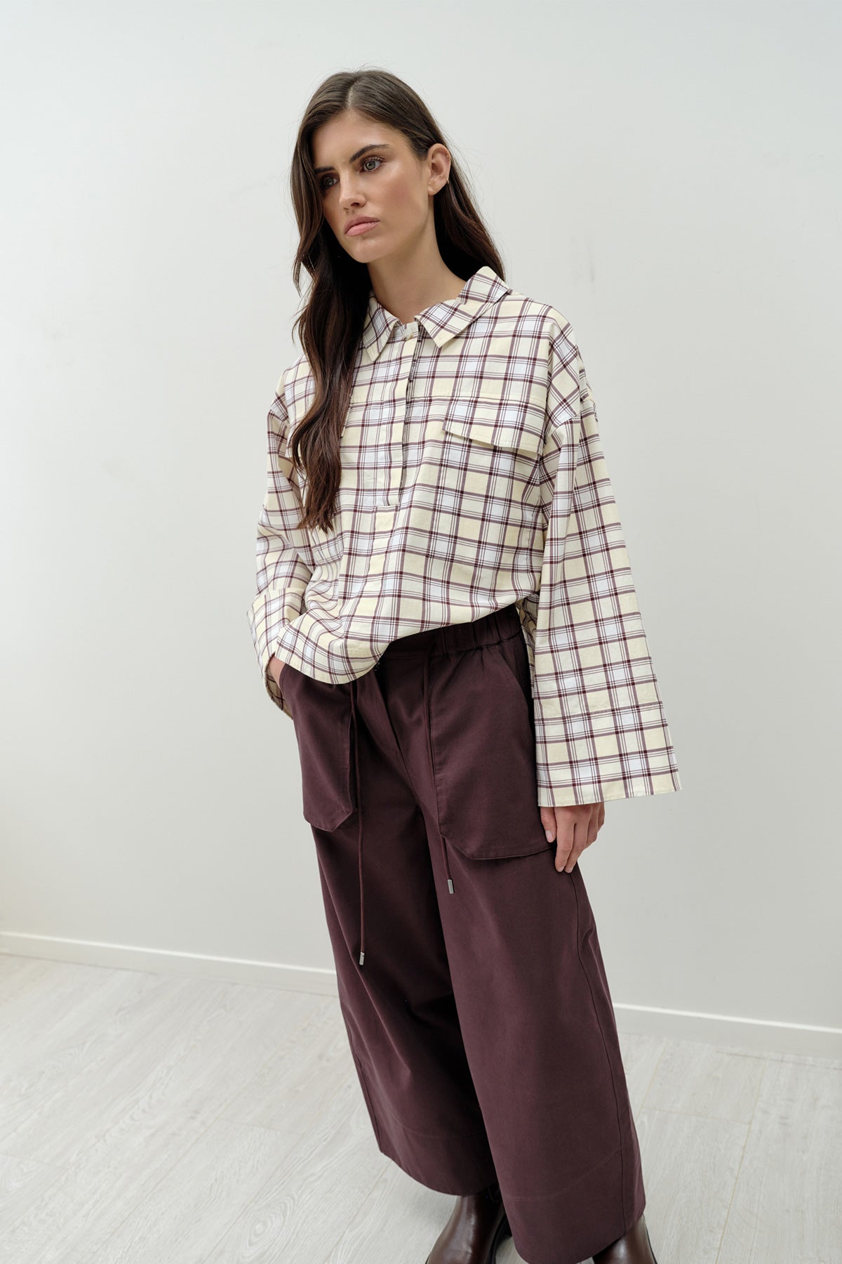 The Lawson Pant is Josephine’s take on the barrel-leg silhouette, designed with structure and ease. An elasticated waistband with drawcord detailing offers comfort, while the press stud and zip front create a clean, refined finish. An intentionally angled hem facing detail and statement pockets complete the design, adding subtle edge and shape. Crafted in the same beautifully washed 100% cotton fabrication as the Sibyl Popover, the fabric has the feel of lightweight denim, bringing depth and durability to the silhouette.
